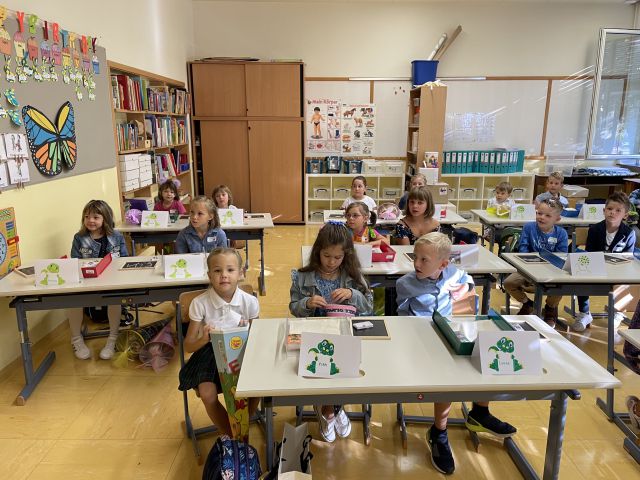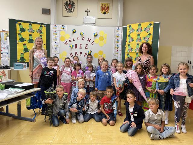 1. Schultag:5.September 2022 Die Schülerinnen und Schüler der 1. Klasse entdecken die Klasse und Schule als gemeinsamen Ort des Lernens.