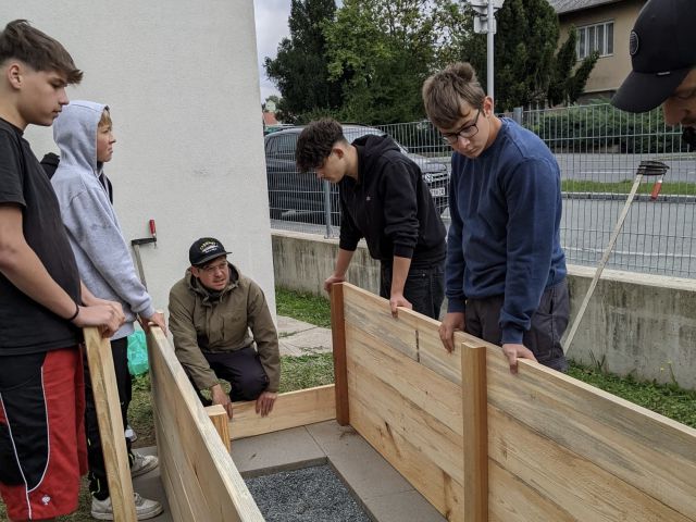 Im Schulgarten der Volksschule Oberpullendorf wurde es kürzlich so laut wie auf einer Baustelle– und das aus gutem Grund! Die Bau-Holz-Gruppe der PTS Oberpullendorf rückte mit Werkzeug, Tatendrang und einer gesunden Portion Muskelkraft an, um zwei Hochbeete zu errichten, die selbst professionelle Gärtner neidisch machen. Die zündende Idee kam von Frau Helga Krizmanits, die feststellte: Kinder brauchen Gemüse. Und Jugendliche brauchen etwas zum Zusammenbauen. Perfekte Kombination! Also wurde kurzerhand das Projekt „Hochbeet“ ins Leben gerufen – ein pädagogisches Win-Win der Extraklasse.