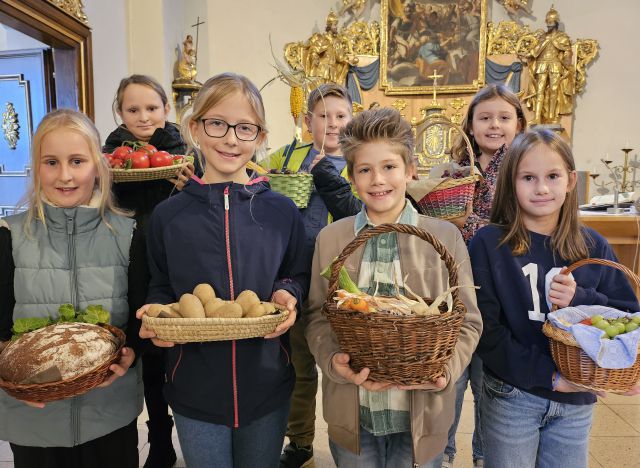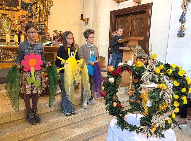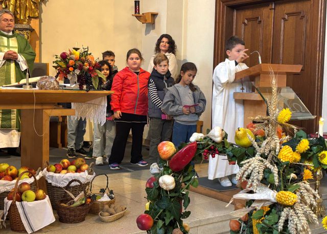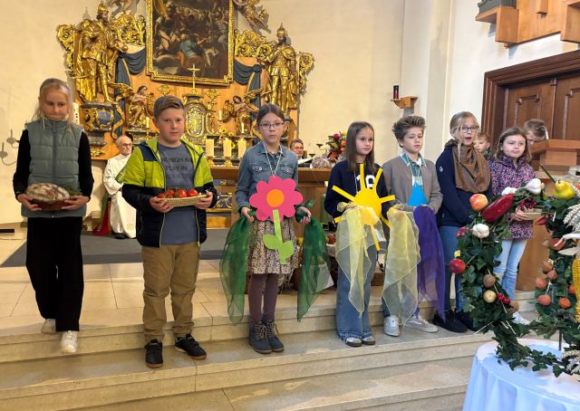 Die Mitgestaltung des Erntedankgottesdienstes ist für die VS Rotenturm Für die Bewahrung von Schöpfung und Natur sind die Schülerinnen und Schüler Unseren Dank und Lobpreis zeigten wir durch Lieder, Gedichte und Texte