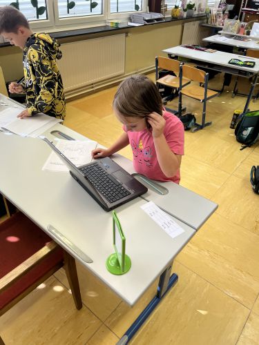 Die Computerstation ist bei den Kindern sehr beliebt, dabei dürfen sie die Wörter am Computer tippen.