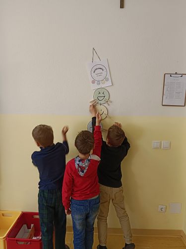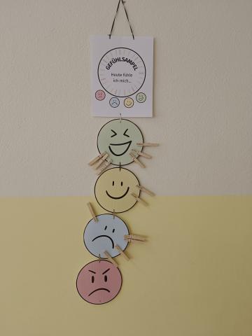 Gewaltprävention: Die Gefühleampel Die Gefühleampel dient als Werkzeug, um Kinder bei der Benennung und Regulation ihrer Gefühle zu unterstützen. Durch das bewusste Erkennen eigener Gefühle wird impulsives oder aggressives Verhalten reduziert. Kinder lernen, Konflikte frühzeitig verbal auszudrücken. Die Kinder setzten mehrmals wöchentlich ihre Kluppe auf ein entsprechendes Gefühlesmily. Anschließend werden Strategien besprochen: Was kann ich tun, wenn ich auf zornig, wütend bin? (z. B. tief atmen, Hilfe holen, zur Ruhe kommen). Warum bist du heute traurig? (Hund gestorben, schlecht geschlafen,.....) Wie können wir diesem traurigen Kind helfen? Nur wenn wir uns gegenseitig unterstützen und helfen, kann eine gute Klassengemeinschaft entstehen. Geschrieben von Traude Steiner zurück