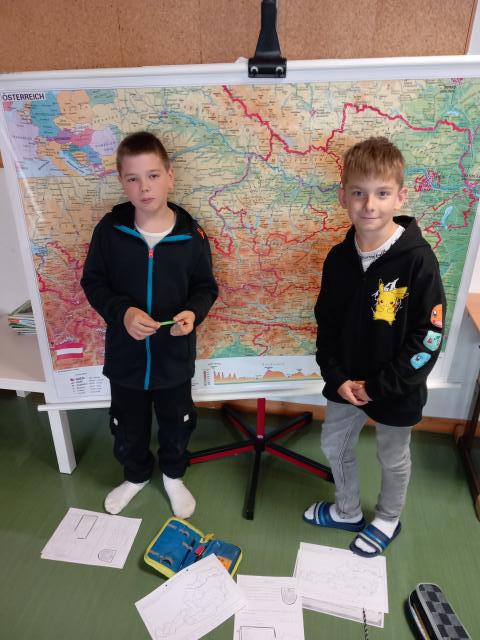 In den vergangenen drei Wochen arbeiteten die Schülerinnen und Schüler der 3a und 3b intensiv am Thema „Österreich“. Im Rahmen einer abwechslungsreichen Lernwerkstatt setzten sich die Kinder mit den Bundesländern, Hauptstädten, Sehenswürdigkeiten, Landschaften und nationalen Symbolen auseinander. An verschiedenen Stationen konnten die Kinder ihr Wissen auf ganz unterschiedliche Weise erweitern: Sie lösten Zuordnungsaufgaben, lernten neue Informationen aus Lesetexten kennen, setzten ein Österreich-Puzzle zusammen, recherchierten online, wiederholten ihr Wissen in einem Österreich-Quiz. Mit großer Motivation arbeiteten die Kinder im eigenen Tempo und zeigten viel Freude am entdeckenden Lernen. Ein besonderes Highlight war das gemeinsame 1,2,3-Spiel im Turnsaal, das die 3a, 3b und die 4. Klasse zusammenführte. Dabei wurden Inhalte spielerisch wiederholt und gleichzeitig Teamgeist und Bewegung gefördert. Mehr Bilder finden Sie in der Bildergalerie Geschrieben von Sara Janisch zurück