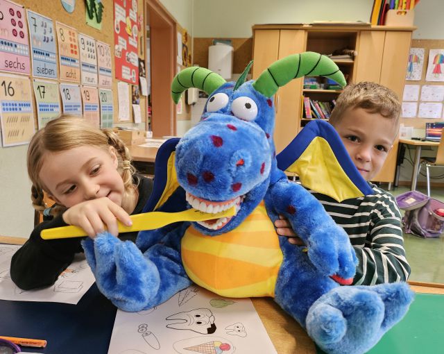 Jedes Jahr besucht uns die Zahngesundheitsexpertin Rebecca. Die Kinder nennen sie liebevoll Zahnfee. Sie bringt den Schülerinnen und Schülern das Thema "Zahngesundheit" spielerisch näher und erklärt, warum richtige Ernährung und richtiges Putzverhalten für unsere Zähne so wichtig sind. Natürlich bringt sie jedesmal auch kleine Geschenke mit. Dieser Workshop wird von der österreichischen Gesundheitskasse und dem Land Burgenland finanziert. Dieses Mal war auch das Maskottchen KIBU mit dabei.