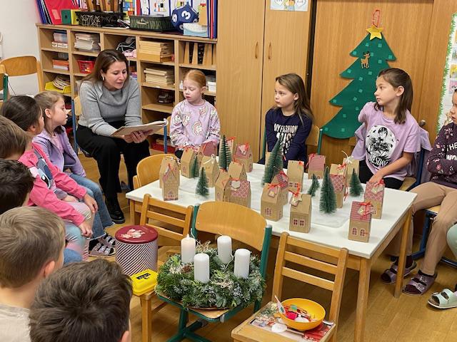 Auch in diesem Schuljahr gibt es in der 1. Klasse wieder jeden Morgen einen Adventkreis. Dabei singen wir Weihnachtslieder und lesen gemeinsam eine Geschichte. Beseonders toll finden die Kinder, dass auch fast jeden Tag ein Elternteil mit dabei ist uns uns beim Lesen unterstützt. Zum Abschlusss darf natürlich das Adventkästchen geöffnet und ein Stück unseres selbstgebackenen Lebkuchens verzehrt werden. Herzlichen Dank an alle Eltern, die sich zum Vorlesen Zeit nehmen können.