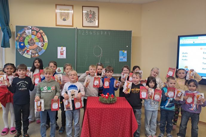 Am 5. Dezember 2025 kam überraschend für die Kinder auch der Nikolaus in der Volksschule zu Besuch. Natürlich kam der Heilige nicht mit leeren Händen, sondern brachte auch für jedes Kind ein kleines Geschenk mit. Die Freude über den Besuch des Heiligen Nikolaus war groß. Geschrieben von Martina Bosits zurück