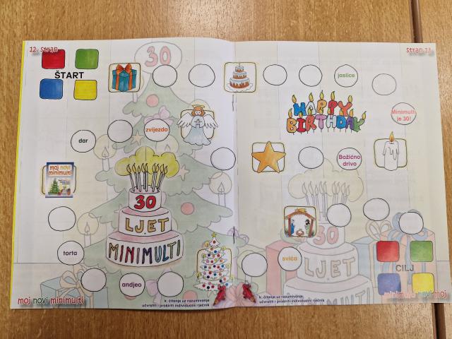 Lernen darf Freude machen! Im Minimulti wurde das Thema Weihnachten in einem Würfelspiel aufgegriffen. Dabei übten die Schülerinnen und Schüler sowohl Weihnachtswörter als auch das Zählen in kroatischer Sprache. S velekim veseljem su dica bacala kocku, brojila i vježbala riči. U skupnoj igre se uču školarice i školari društveno ponašanje. Zvanatoga se tribaju držati pravila i paziti na druge.