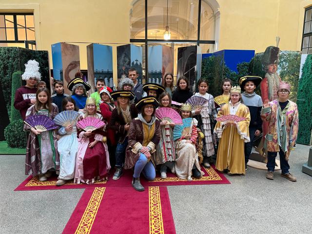 Danach ging es mit der U-Bahn weiter vom Prater nach Schönbrunn. Im Kindermuseum Schloss Schönbrunn erwartete uns eine Führung zum Thema "Es weihnachtet". Dabei erfuhren wir viel über Kaiserin Maria Theresia sowie über das Leben und Arbeiten im Schloss Schönbrunn zu ihrer Zeit. Ein besonderes Highlight war der Abschluss der Führung! Wir durften Kleidung aus dem 18. Jahrhundert anprobieren und uns für einen Moment wie Fürsten und Fürstinnen am Hofe fühlen.