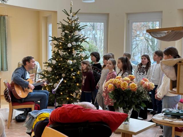 Die Weihnachtszeit ist eine ganz besondere Zeit im Jahr. Lebkuchenduft und Lichter, aber auch Kinder die singen gehören einfach dazu. Deshalb wollten wir den Bewohnern von Wohnen und Pflegen daHeim ein besonderes Geschenk machen. Der Schulchor gestaltete ein Minikonzert und zauberte den Bewohnern, nicht nur mit der Darbietung des Liedes "In der Weihnachtsbäckerei" ein Lächeln ins Gesicht. Bei "Leise rieselt der Schnee" sangen sogar einige Bewohner mit. Auch die Celloversion von "We wish you a merry christmas" sorgte für Begeisterung. Als Dank bekamen die Kinder nicht nur Applaus und das Gefühl etwas Besonderes geleistet zu haben, sondern auch Süßigkeiten. Wir freuen uns auf unsere nächsten Besuche. Mehr Bilder finden Sie in der Bildergalerie zurück