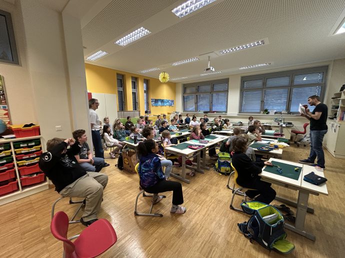 Heute besuchte uns der österreichische Autor Hannes Hörndler. Er stellte uns zwei seiner Bücher vor und am Ende gab es sogar ein Quiz. Simon der 4. Klasse hat das Quiz gewonnen. Er hat ein Buch mit persönlicher Widmung von Hannes Hörndler bekommen. Herzliche Gratulation!