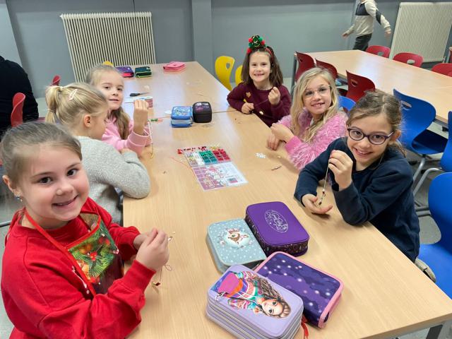 in der Weihnachtsbäckerei - Lebkuchenbacken mit den 2. Klassen In der Vorweihnachtszeit wurde es in unserer Schule besonders gemütlich und duftete herrlich nach Weihnachten. Im Mittelpunkt des Vormittags stand das gemeinsame Backen und Verzieren von Lebkuchen, auf das sich die Kinder schon sehr gefreut hatten. Mit großer Begeisterung wurden Teige ausgerollt, Formen ausgestochen und die Lebkuchen anschließend kreativ mit Zuckerguss und bunten Streuseln verziert. Dabei entstanden viele kleine Kunstwerke, die natürlich auch gemeinsam probiert wurden. Dazu gab es wärmenden Kinderpunsch, der perfekt zur vorweihnachtlichen Stimmung passte. Neben dem Backen gab es weitere kreative Angebote: Es wurden bunte Armbänder gebastelt und schöne Weihnachtskarten gestaltet, bei denen die Kinder ihrer Fantasie freien Lauf lassen konnten. Der Vormittag war geprägt von fröhlichem Miteinander, Kreativität und vorweihnachtlicher Stimmung und wird allen sicher noch lange in Erinnerung bleiben. Ein herzliches Dankeschön gilt den engagierten Eltern, die uns tatkräftig unterstützt haben. Mehr Bilder finden Sie in der Bildergalerie zurück