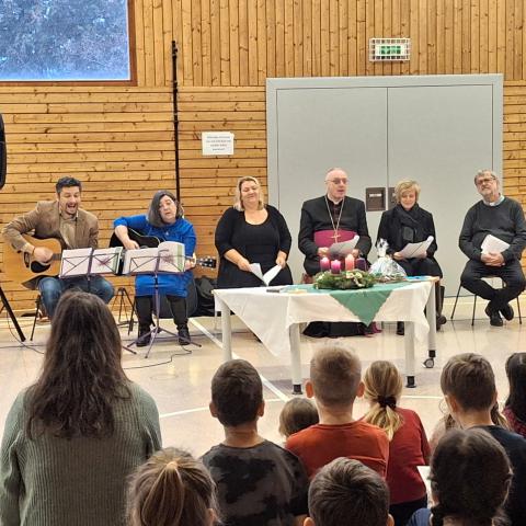 Am Mittwoch, 17. 12. 2025, durften wir einen hohen Besuch in unserer Schule empfangen. Bischof Dr. Ägidius Zsifkovics kam anlässlich der routinemäßigen Dekanatsvisitation in unsere Schule, wo er von unserer Direktorin und SchülerInnen begrüßt wurde. Eine gemeinsame Adventfeier im Turnsaal stand danach auf dem Programm. Weiter ging es mit einem Besuch in einigen Klassen und einem Austausch mit den Lehrerinnen und Lehrern. Danach verabschiedete sich unser Besuch wieder und machte sich auf den Weg nach Zillingtal, wo er auch Kinder und Lehrerinnen traf und die neue Schule besichtigte. zurück