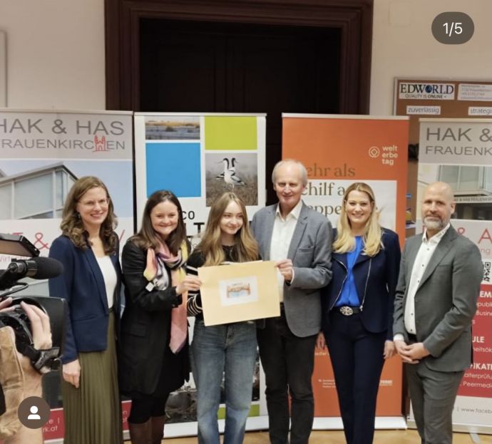 Laura Lentsch hat beim Logo-Wettbewerb zum 25-jährigen UNESCO-Welterbe-Jubiläum Fertö-Neusiedler See den 2. Platz erreicht! Wir gratulieren sehr herzlich zu dieser großartigen Leistung! Insgesamt nahmen sieben Schulen aus dem Bezirk Neusiedl am See mit 103 Einrichtungen am Wettbewerb teil. Umso mehr freuen wir uns über diesen tollen Erfolg und sind sehr stolz auf Lauras Kreativität und Engagement.