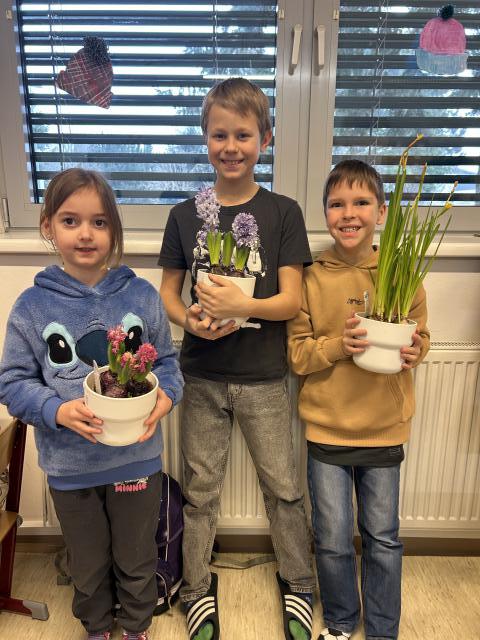 Auch wenn draußen noch Winter ist, ist bei uns im Klassenzimmer schon ein Hauch von Frühling eingezogen: Zwei Hyazinthen und eine Narzisse haben bei uns ein neues Zuhause gefunden und lassen uns schon jetzt von wärmeren Tagen träumen. Gemeinsam haben wir die Frühblüher ganz genau unter die Lupe genommen und dabei viel Spannendes über diese Pflanzen gelernt. Im Sachunterricht haben wir uns zwei Stunden lang intensiv mit den Frühblühern beschäftigt. Die Kinder durften Infokärtchen lesen, wichtige Informationen herausfiltern und anschließend kreative Steckbriefe zu den Pflanzen gestalten. Dabei wurde fleißig gelesen, gemalt und geschrieben. Auch die Kinder der ersten Klasse haben die Blumen aufmerksam beobachtet. Inspiriert von den echten Pflanzen entstand eine bunte Blumenwiese mit verschiedenen Frühblühern, die nun unser Klassenzimmer schmückt. So wurde der Frühling nicht nur sichtbar, sondern auch für alle Sinne erlebbar – und die Vorfreude auf die kommende Jahreszeit ist bei allen deutlich spürbar. Geschrieben von Lisa Senhofer zurück
