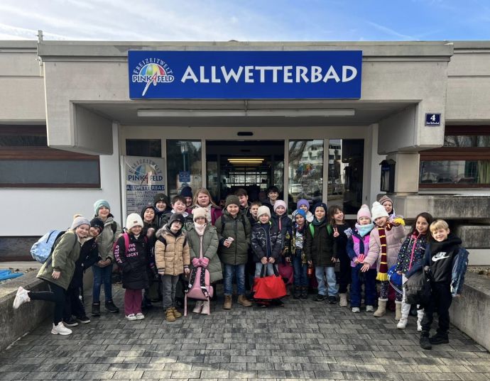 Pilotprojekt "Schwimmen in der Volksschule" In den vergangenen Wochen hatten unsere Schülerinnen und Schüler die Möglichkeit, im Rahmen mehrerer Schwimmeinheiten im Hallenbad Pinkafeld ihre Schwimmkenntnisse zu verbessern und wichtige Sicherheit im Wasser zu gewinnen. An vier Dienstagen fuhren wir gemeinsam mit zwei anderen Volksschulen mit dem Bus zum Schwimmen.