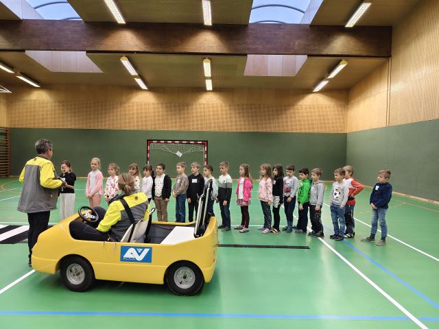 „Blick und Klick“ ist eine Aktion von AUVA und ÖAMTC und steht unter dem Motto „Lernen durch Erleben“. Der Turnsaal der Schule wird zu einer Straße umfunktioniert, damit die Kinder richtiges Verhalten im Straßenverkehr üben können. Mit einem speziellen Elektroauto und auch aufblasbaren Autos wird den Kindern u. a. anschaulich die Bedeutung der Sichtlinie und des Blickkontakts für das Überqueren der Fahrbahn vermittelt. Mehr Bilder finden Sie in der Bildergalerie zurück
