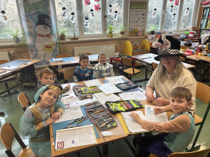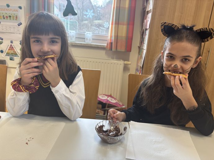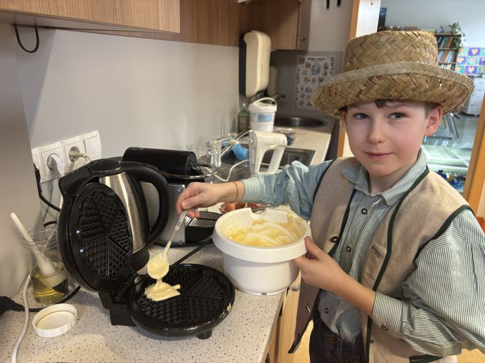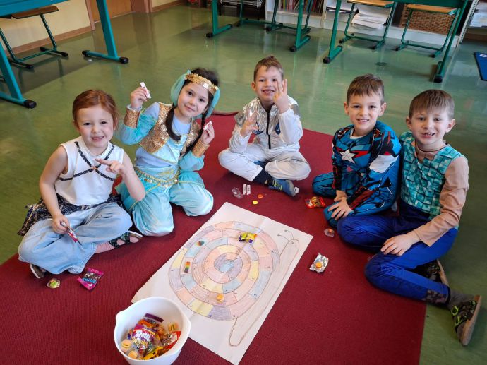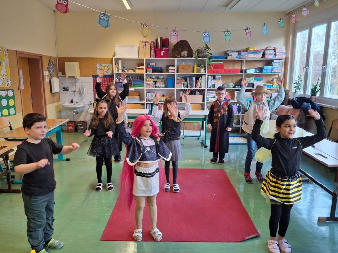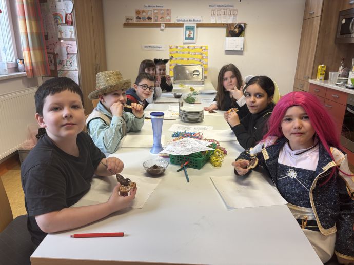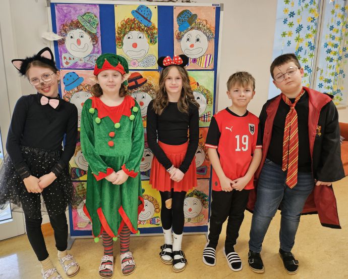 Am Faschingsdienstag war es besonders lustig in unserer Schule. Die Schüler:innen und Lehrerinnen kamen verkleidet und mit guter Laune in die Schule. Alle vergnügten sich in den verschiedenen Stationen, die jeweils von einer Lehrerin betreut wurden. Mit coolen Partytänzen, Rätseln, Spielen und Basteleien ging es fröhlich durch den Vormittag. Sogar süße Waffeln durften die Mädchen und Buben selber backen und dann genüsslich verspeisen.