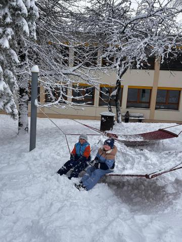 Cijelu noć je snigalo. Danas je bilo sve bijelo. Jako lipo za pogledat. Ne tako lipo, ako se moramo autom voziti. Neki/e učitelji/ce i neka dica nisu za dob mogli dojt u školu. Dostali smo informaciju, da su svi oprošćeni od nastave ako nemoru dojti. Oni, ki su bili u školi su doživili poseban dan. Učitelj/ice su skupljali dicu u dvorani za gibanje i šport. Ona smo se podilili u razrede i se učili. U 4. uri su sva dica smila pojt u vrt, ako su imala dobru pratež sobom. Tako su uživala poseban zimski dan. Mehr Bilder finden Sie in der Bildergalerie zurück