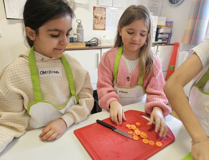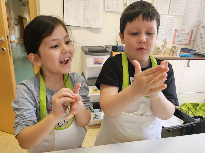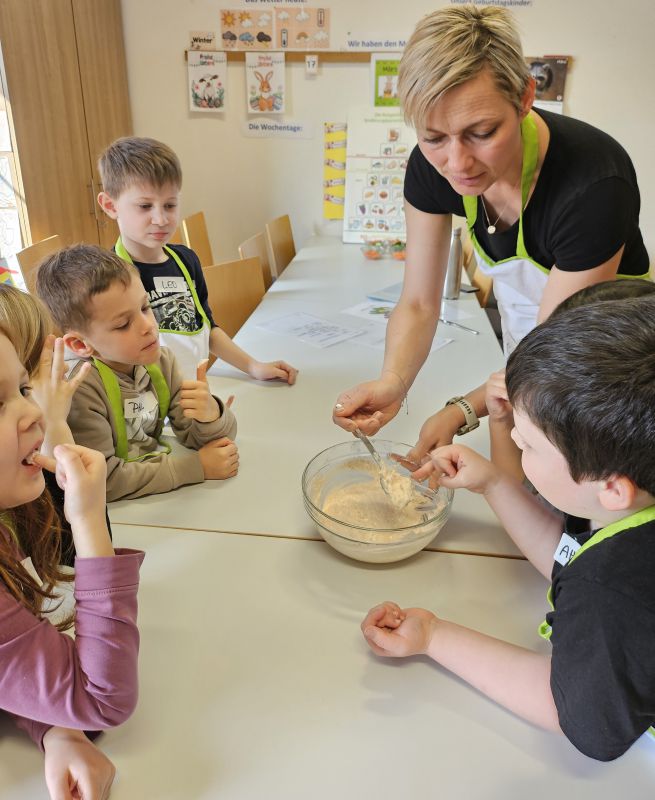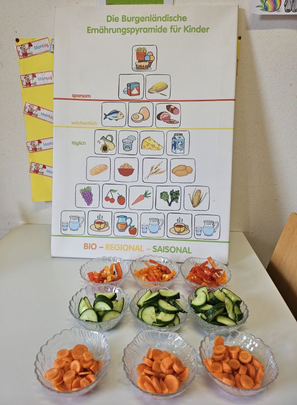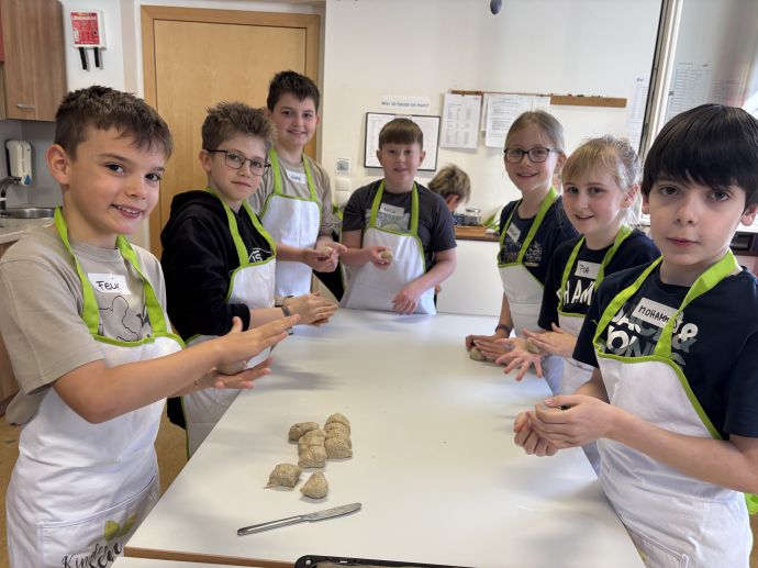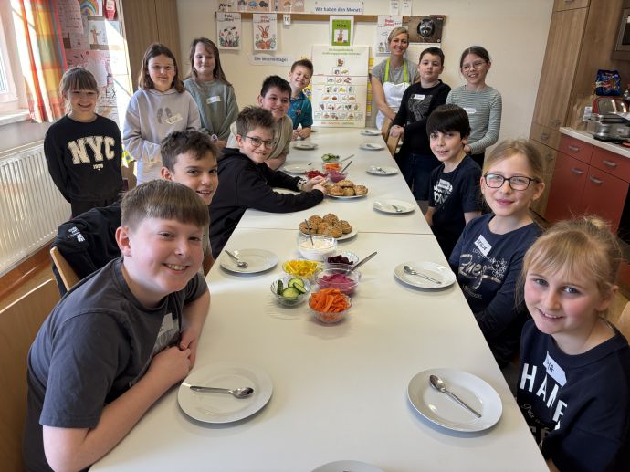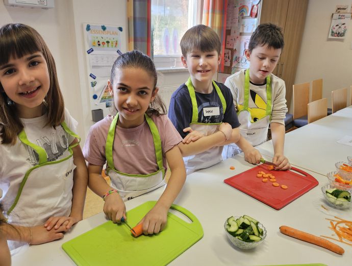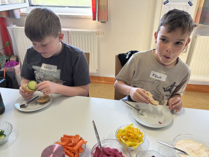 Gesunde Jause kann richtig lecker sein. Das konnten unsere Schülerinnen und Schüler beim GeKiBu-Workshop mit Ernährungsexpertin Frau Deutsch wieder selbst ausprobieren. In zwei Gruppen wurde jeweils an zwei Tagen geschnippelt, gerührt und gestrichen. Es entstanden Vollkorn-Topfenweckerl, ein pinker Rote-Rüben-Dip, ein köstlicherKarotten- aufstrich, knackige Gemüsesticks mit selbstangebauter Kresse. Im Mittelpunkt stand die Bedeutung einer ausgewogenen Ernährung. Beim anschließenden gemeinsamen Essen konnten alle ihre Köstlichkeiten genießen und das Miteinander stärken.