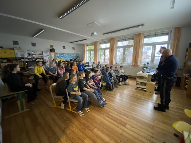 Cyber-Kids – Sicher unterwegs im InternetKürzlich durften wir Polizistinnen und Polizisten an unserer Schule begrüßen, die im Rahmen des Projekts „Cyber-Kids“einen spannenden und lehrreichen Vortrag hielten. Dabei erfuhren die Schülerinnen und Schüler, wie sie sich vor Gefahren im Internet schützen können und worauf sie im Umgang mit digitalen Medien achten sollten. Themen wie sicheres Verhalten online, Schutz persönlicher Daten und der richtige Umgang mit unbekannten Kontakten wurden kindgerecht und anschaulich vermittelt. Mit großem Interesse beteiligten sich die Kinder und stellten viele Fragen aus ihrem Alltag. Ein herzliches Dankeschön an die Polizei für diesen wichtigen Beitrag zur Sicherheit unserer Schülerinnen und Schüler! Mehr Bilder finden Sie in der Bildergalerie zurück