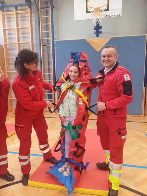 Am 20.3. fand an unserer Schule der Rot-Kreuz-Tag statt. Andreas Mozelt und sein Team kamen mit einem Rettungswagen zur Schule und erklärten den Kindern, wie sie rasch erste Hilfe leisten können. Zuerst wurde der große Rettungskoffer inspiziert, danach wurden die Wärmedecke ausprobiert und Verbände angelegt. Auch die Rettungstrage wurde getestet und jedes Kind durfte die Ersthilfe an dem Übungstorso ausprobieren. Die stabile Seitenlage wurde ebenfalls in Teams ausprobiert, um auf den Ernstfall gut vorbereitet zu sein. Das Highlight war jedoch wie immer das Rettungsauto, das von den Kindern genau unter die Lupe genommen wurde. Es war ein sehr lehrreicher und informativer Tag. Mehr Bilder finden Sie in der Bildergalerie zurück