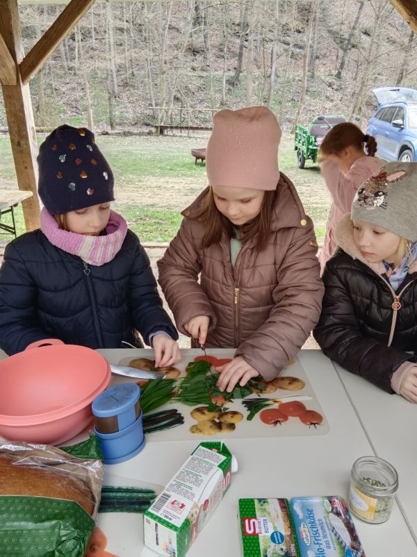 Die Schüler und Schülerinnen der 1b Klasse unternahmen im Rahmen der Gesundheitserziehung und des Umweltschutzes gemeinsam mit Sonja vom NUPA einen Lehrausgang zum Schulungshaus beim Stausee. Bereits unterwegs sammelten sie frischen Bärlauch, der anschließend vor Ort weiterverarbeitet wurde. Beim Schulungshaus stellten die Kinder unter der Anleitung von Sonja einen schmackhaften Aufstrich sowie Bärlauchbutter her. Ein besonderes Highlight war auch die Herstellung von Butter aus Schlagobers, die durch kräftiges Schütteln entstand.