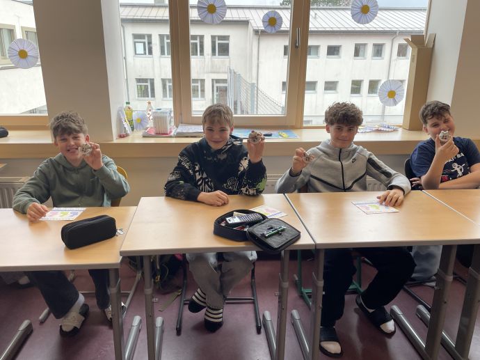 In der letzten Stunde vor den Ferien fand in unserer Klasse eine gemütliche Osterjause statt. Ein besonderer Dank gilt Elina, Johanna und Lara, die zuhause mit viel Mühe und Engagement köstliche Osterhasen-Muffins für alle SchülerInnen gebacken haben.