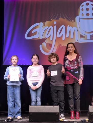 Drei Schülerinnen und Schüler unserer Schule nahmen am kroatischen Gesangswettbewerb „Grajam 2026“ für 8 bis 14-jährige teil. Der Vorwettbewerb fand in der KUGA in Großwarasdorf statt. Dabei präsentierten die Kinder jeweils ein Volkslied sowie ein Lied ihrer eigenen Wahl. Insgesamt stellten sich 115 Sängerinnen und Sänger bzw. Gruppen, also 160 Kinder in vier Kategorien der Jury. Bewertet wurden das richtige Singen, die Textsicherheit und das Auftreten auf der Bühne. Unsere Schülerin Emilia Illedich aus der 3. Schulstufe konnte sich unter 42 Teilnehmer_innen aus ihrer Kategorie erfolgreich für das Finale qualifizieren. Dort traten die drei bzw. vier Besten jeder Gruppe vor großem Publikum auf und sangen live mit der bekannten burgenländischen Band „Pax“. Die Aufregung und Anspannung bei den Finalisten waren groß. Unsere Emilia erreichte dabei den hervorragenden 2. Platz in ihrer Klassifizierung. Wir gratulieren unseren drei teilnehmenden Kindern herzlich zu ihren ausgezeichneten Leistungen. Dieses besondere Erlebnis wird für Makar, Mia und Emilia lange in Erinnerung bleiben.