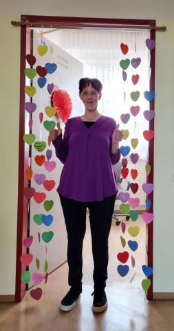 Mit einem selbst gedichteten Lied, einem liebevoll zusammengestellten Geschenkskorb, einem Herzvorhang mit vielen lieben Texten und persönlichen Wünschen sowie süßen Leckereien überraschten wir sie nach der großen Pause.