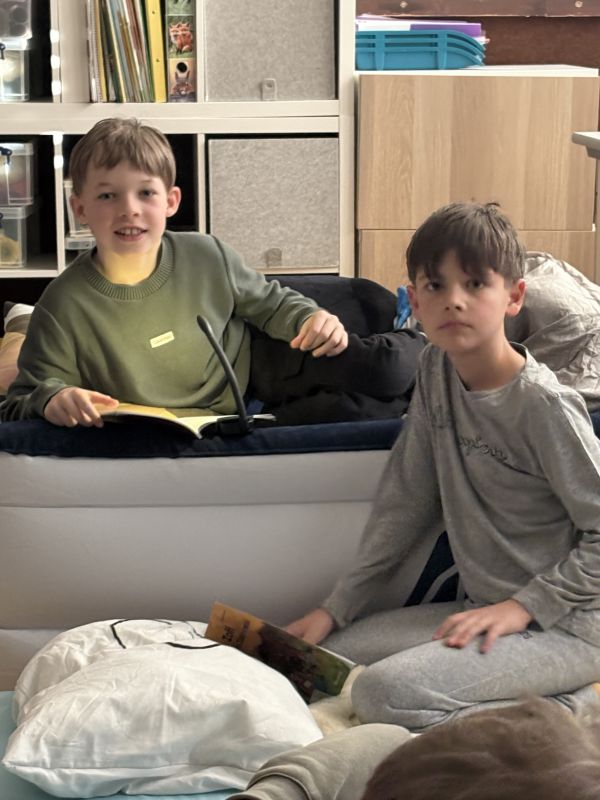 Zurück in der Schule wurde es dann richtig gemütlich. Wir lasen gemeinsam in unserem Klassenlesebuch, tauschten uns darüber aus, spielten Spiele oder vertieften uns in unsere mitgebrachten Bücher.