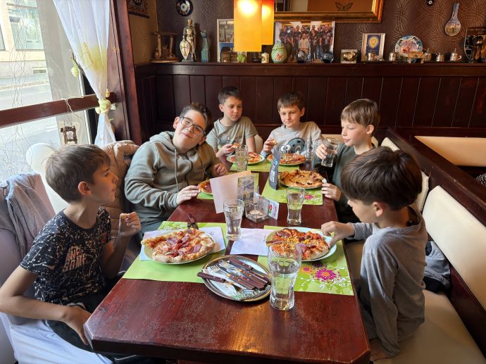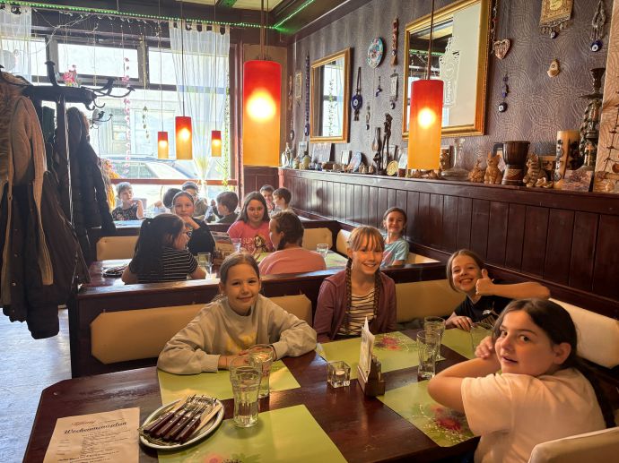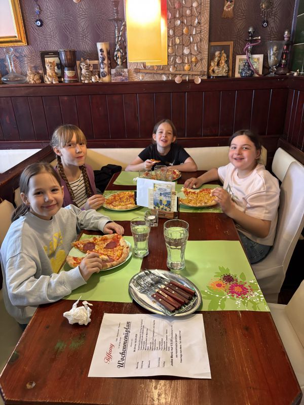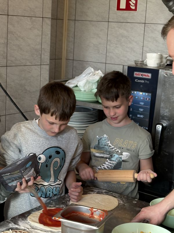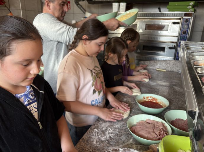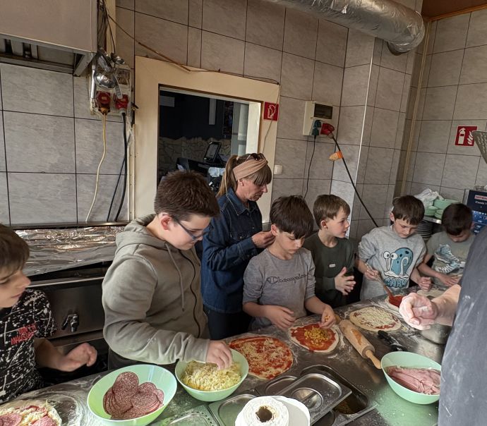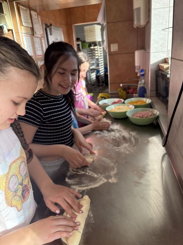 Ein besonderes Highlight erwartete uns gleich zu Beginn: Wir durften in der Pizzeria Tiffany unsere eigenen Pizzen backen! Mit viel Begeisterung belegten wir unsere Lieblingsvarianten und ließen sie uns anschließend schmecken. Ein herzliches Dankeschön an den Chef der Pizzeria für die Einladung!