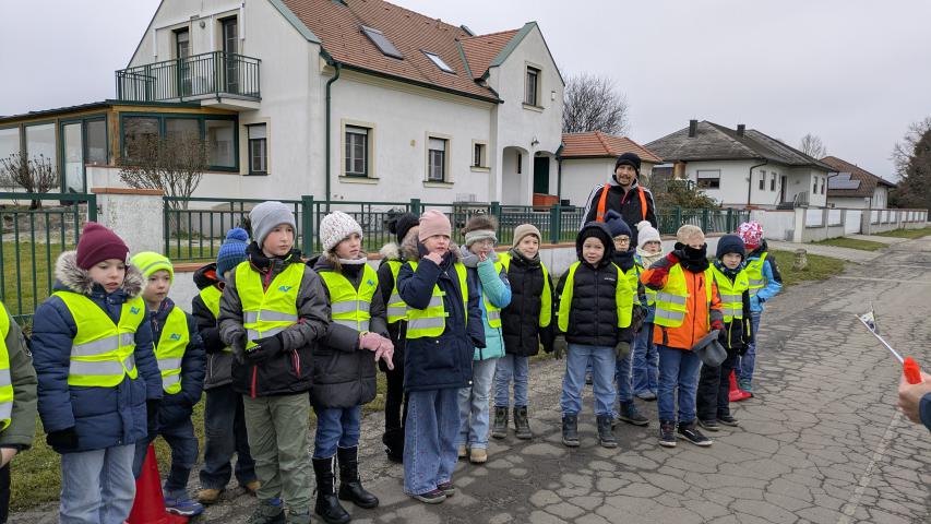 Wie lange ist ein Kilometer? – Die 3. Klassen auf Entdeckungstour Dieser Frage gingen die Schülerinnen und Schüler der 3. Klassen auf ganz praktische Weise nach. Ausgerüstet mit Maßband, viel Neugier und warm eingepackt machten sie sich auf den Weg, um einen Kilometer hautnah zu erleben. Unterwegs wurde fleißig gemessen, Schritte gezählt und Markierungen gesetzt. So bekamen die Kinder ein Gefühl dafür, wie lang ein Kilometer tatsächlich ist und wie unterschiedlich Entfernungen wahrgenommen werden können. Trotz des kalten Wetters ließen sich die motivierten Forscherinnen und Forscher nicht aufhalten. Mit viel Einsatz und Durchhaltevermögen meisterten sie die Strecke und sammelten wertvolle Erfahrungen außerhalb des Klassenzimmers. Ein spannender Unterrichtstag, der zeigte: Lernen funktioniert auch am besten in Bewegung und durch eigenes Erleben! Mehr Bilder finden Sie in der Bildergalerie zurück