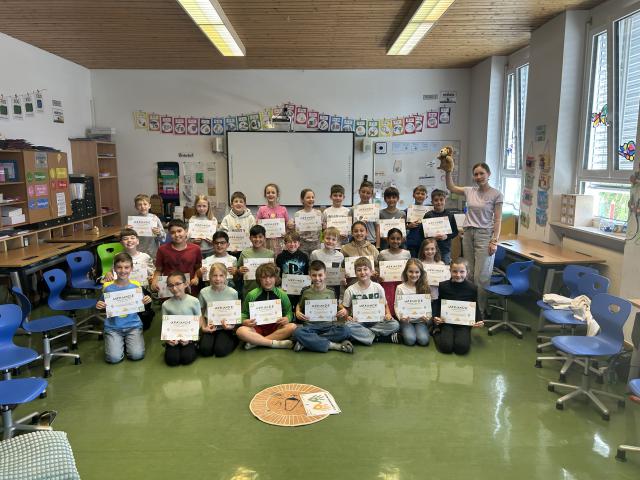 Die 3. Klassen unserer Volksschule durften heute an einem „Löwenmut-Training“ teilnehmen. Im Mittelpunkt standen die Förderung der Resilienz (seelische Widerstandskraft), das bewusste Wahrnehmen und Verstehen von Gefühlen sowie der respektvolle Umgang miteinander. Durch spielerische Übungen und anschauliche Beispiele lernten die Kinder, wie sie mit schwierigen Situationen besser umgehen und ihr Selbstvertrauen stärken können. Ein besonderer Fokus lag zudem auf dem Thema Mobbing und Mobbingprävention. Die Schülerinnen und Schüler zeigten großes Interesse und arbeiteten engagiert mit. Der Vormittag bot viele wertvolle Impulse für ein positives und respektvolles Miteinander im Schulalltag. Das Löwenmut-Training war für beide Klassen ein lehrreicher und zugleich abwechslungsreicher Vormittag. Mehr Bilder finden Sie in der Bildergalerie Geschrieben von Elisabeth Kiss zurück