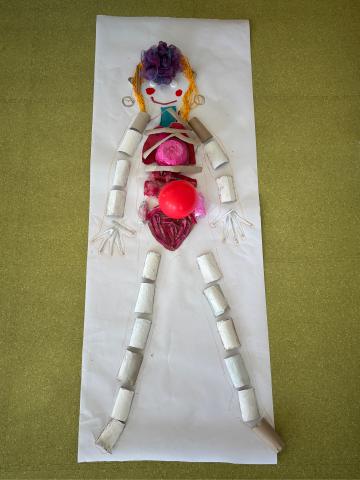 Im Rahmen des Wettbewerbs „Knobel entdeckt die Welt“ haben die Kinder mit viel Begeisterung Materialien gesammelt, die sich für Recycling und Upcycling eignen. Aus diesen Alltagsmaterialien entstand in mehreren Unterrichtseinheiten ein beeindruckendes 3D-Körpermodell. Die Kinder beschäftigten sich intensiv mit dem menschlichen Körper – mit Hilfe der iPads und auch im Sitzkreis, in dem viel vorgestellt, erklärt und gemeinsam besprochen wurde. Vor allem im Sachunterricht, aber auch in Technik und Design, lernten die Kinder die Organe, ihre Funktionen und ihre ungefähre Größe kennen und vertieften ihr Wissen auf unterschiedliche Weise. Mit großem Einsatz wurde geschnitten, gemalt, geklebt und gestaltet, bis unser Modell schließlich fertiggestellt war. Dabei konnten die Kinder nicht nur ihr Sachwissen erweitern, sondern auch ihre kreativen, handwerklichen und sozialen Kompetenzen stärken. Wir sind sehr stolz auf das gelungene Ergebnis und auf die tolle Teamarbeit unserer Schülerinnen und Schüler! Mehr Bilder finden Sie in der Bildergalerie Geschrieben von Tünde Pjrek zurück