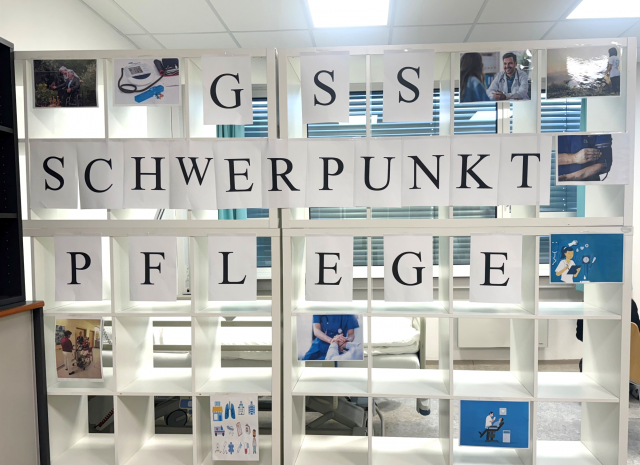 Im Bereich Pflege wird der Fokus stark auf die Praxis gelegt. Diesen Part übernehmen Pflegeeinrichtungen aus der Region mit Vorträgen, Workshops und Schnuppermöglichkeiten an den berufspraktischen Tagen.
