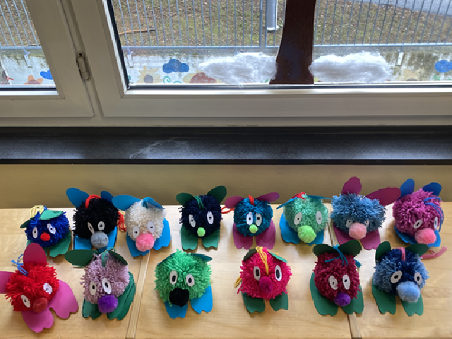 Diesen Pompon verwandelten wir in ein lustiges Tier!