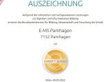 - E-MS Pamhagen erhält MINT-GütesiegelDie E-Mittelschule Pamhagen wurde am 6. Juni 2023 im Haus der Industrie mit dem MINT-Gütesiegel ausgezeichnet. Bildungsminister Polaschek überreichte persönlich die Auszeichnung, die für hervorragende Leistungen im Bereich Mathematik, Informatik, Naturwissenschaften und